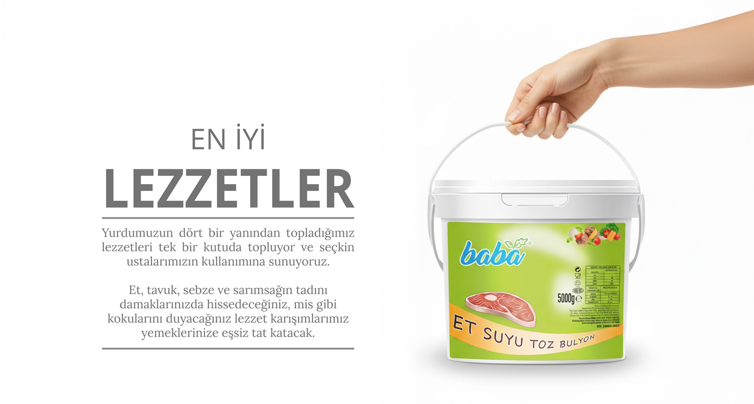 Endüstriyel yemek üretim tesislerine(catering, restaurant) ve gıda toptancılarına baharat, soyalı soyasız harçlar, et suyu ve tavuk suyu başta olmak üzere bulyonlar, nişasta, pastane malzemeleri ve kuruyemiş üretimi yapan Baba Gıda, Ayhan Baba ve  Baba Baharat markasıyla yemeklere lezzet katıyor.
